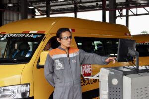 Entre los controles que se ejecutan a estas unidades se incluye el espacio reglamentario entre asientos, cinturones de seguridad para pasajeros, neumáticos en buen estado y el funcionamiento del disco Pare en el costado del bus.
