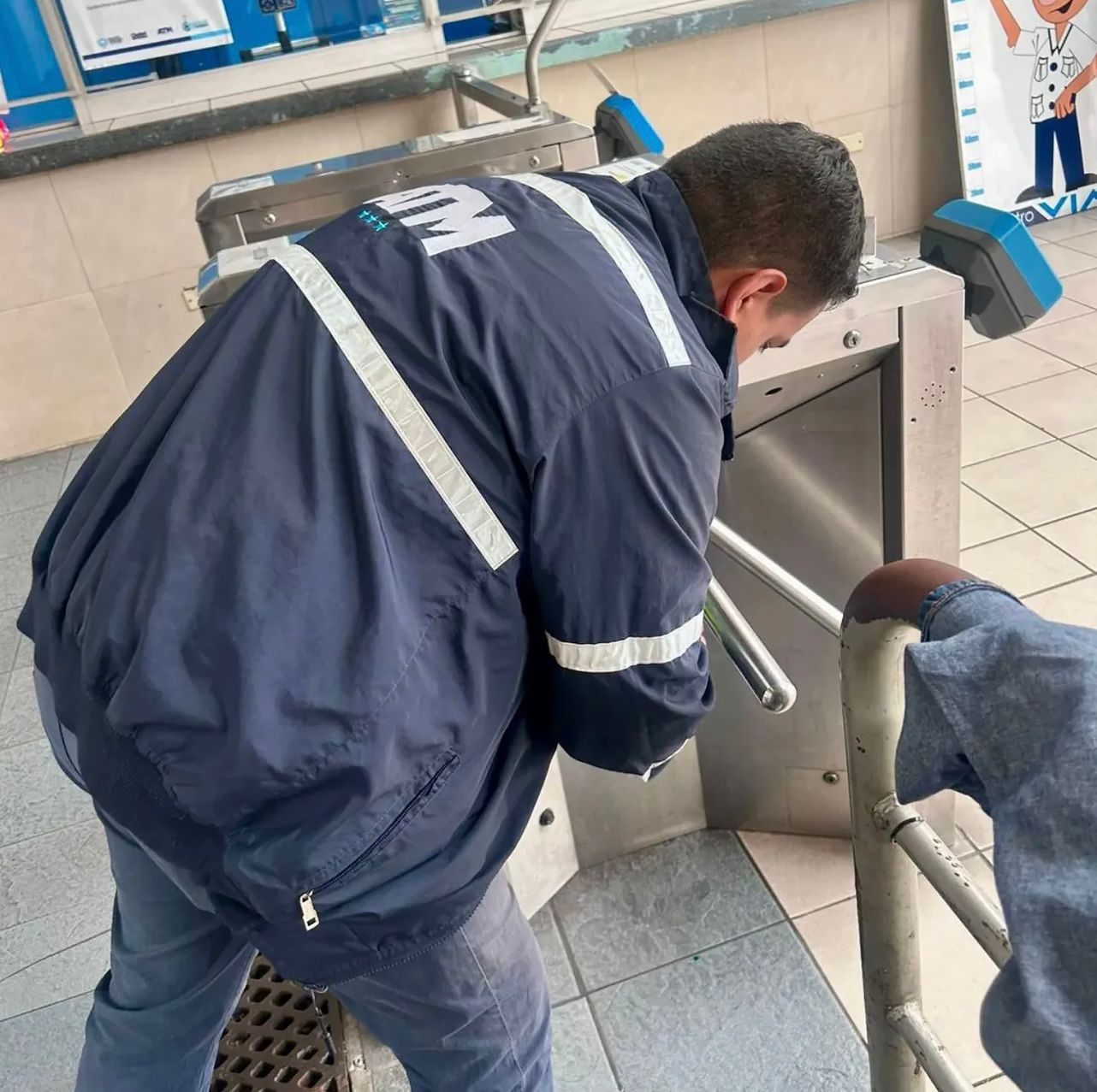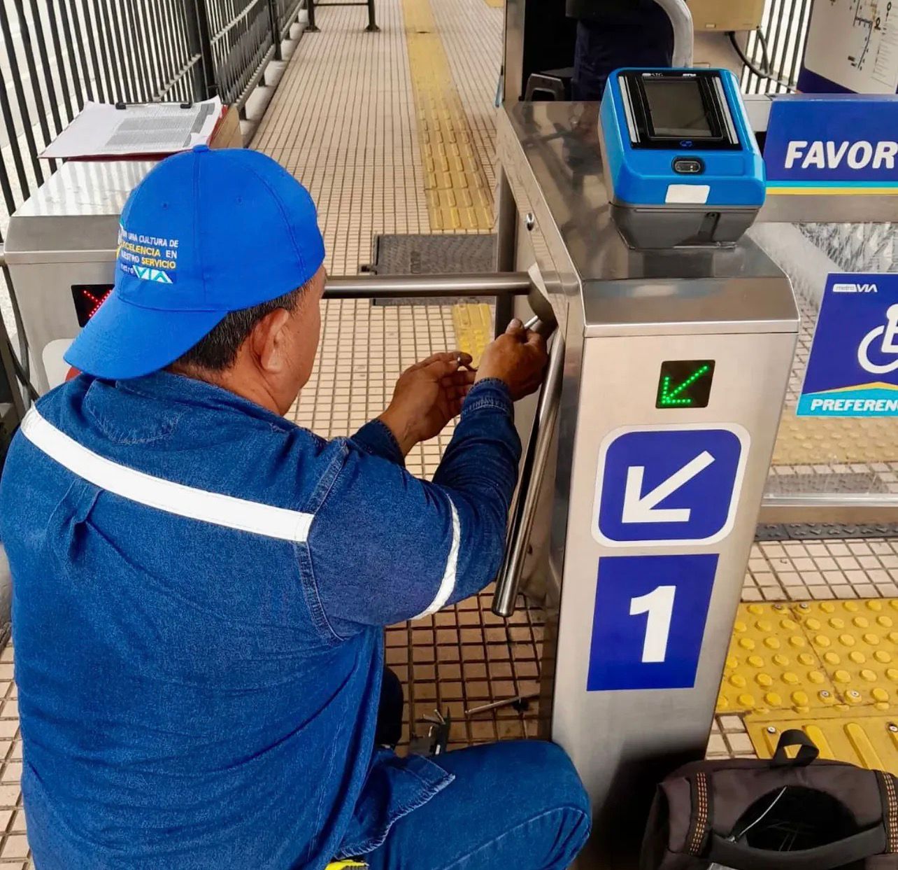 Las cuadrillas de mantenimiento trabajan de forma sostenida en la reparación de torniquetes de acceso, con ello se asegura un ingreso fluido para todos los pasajeros.