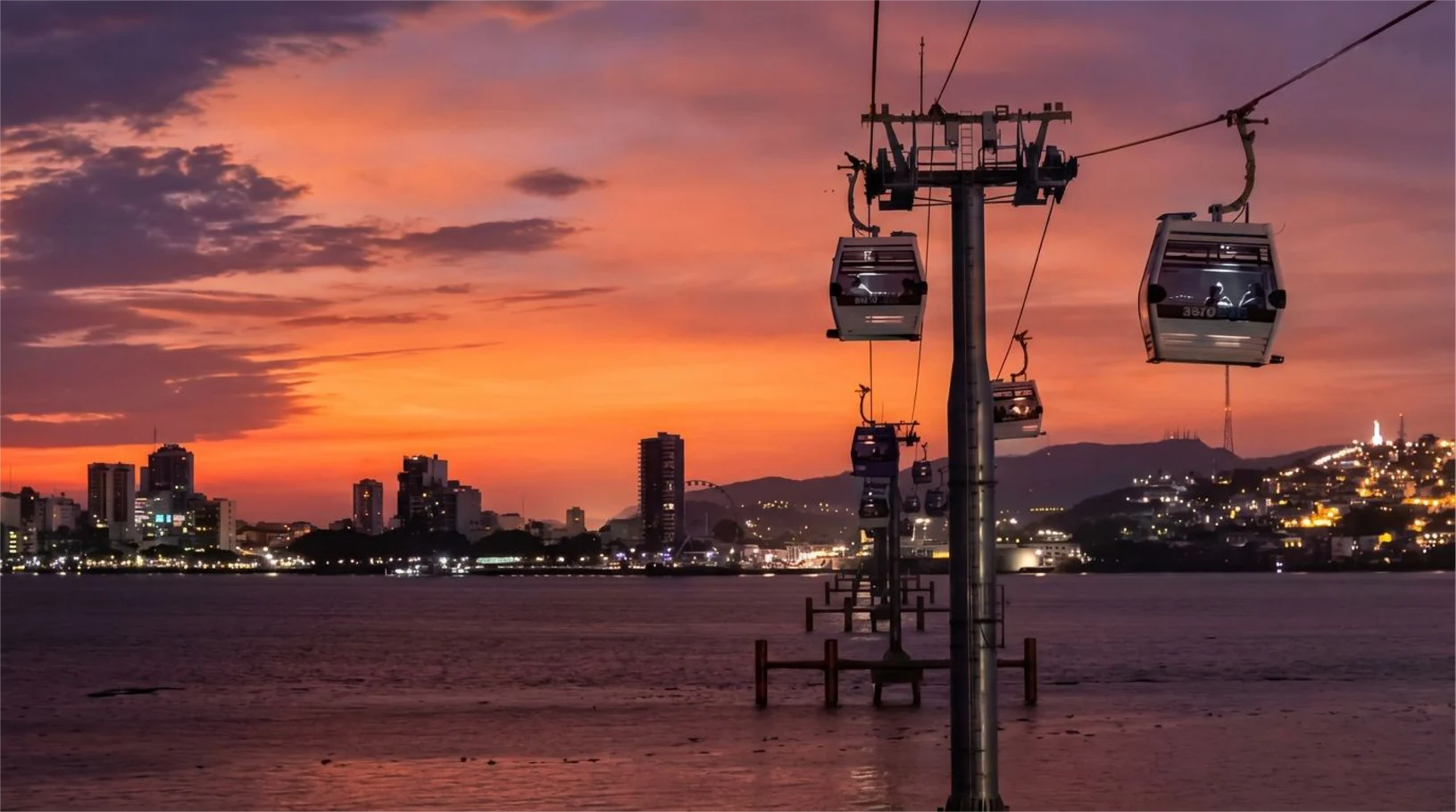 Desde sus cabinas, es posible contemplar el río, el perfil urbano y los atardeceres que pintan el cielo con tonos cálidos, creando un paisaje inolvidable.